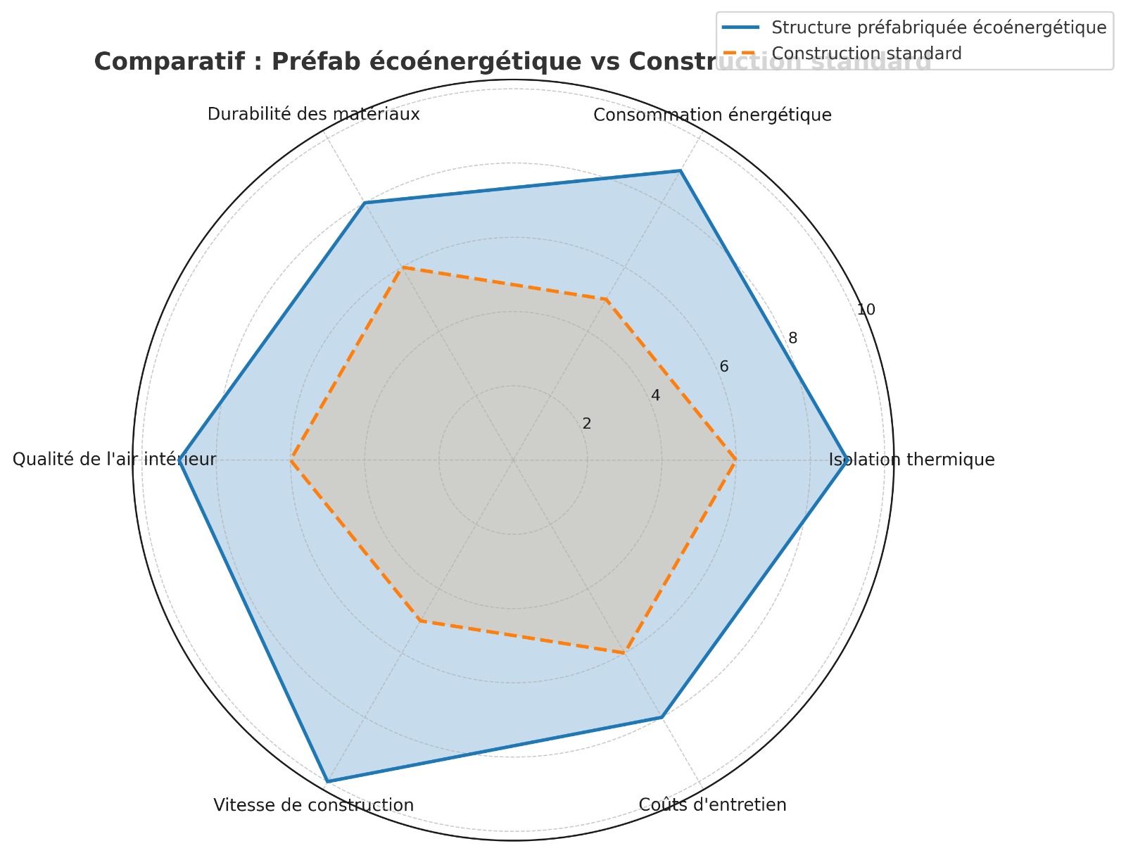 Grâce à la contribution d’Écoleader et du CAE Rivenord, nous avons pu réaliser cette étude. Elle démontre qu’une structure préfabriquée écoénergétique surpasse une construction standard sur plusieurs aspects clés : isolation, efficacité énergétique, durabilité, qualité de l’air, rapidité de mise en œuvre et coûts d’entretien.